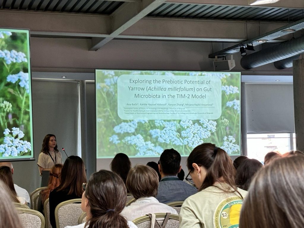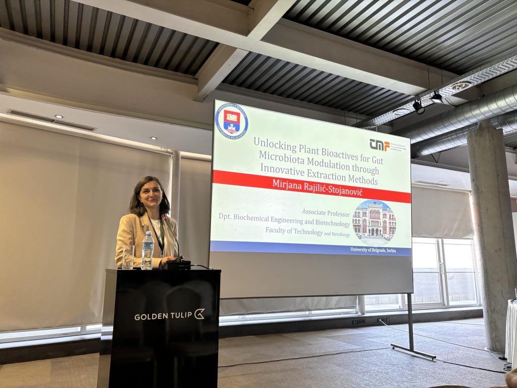 On the first day of Session 1, titled “Interaction between Human Microbiota and Health” (Chairs: Dr. Patrick Jansen from RadboudUMC, Nijmegen, the Netherlands, and Dr. Marija Ćorović from TMF, University of Belgrade, Serbia), several notable lectures took place. The plenary speaker, Prof. Dr. John Penders from Maastricht University, the Netherlands, delivered an excellent presentation on human milk oligosaccharides (HMOs) and other prebiotics. Following this, keynote speaker Prof. Dr. Mirjana Rajilić-Stojanović from TMF discussed plant bioactive compounds and their role in modulating the gut microbiota through innovative extraction techniques. Another keynote, Prof. Dr. Ellen H. van den Bogaard from RadboudUMC, presented on “Modeling the Crosstalk between the Microbiome and Human Skin.” The session also featured oral presentations by young researchers Noor van Hout from RadboudUMC and Ana Bačić from TMF.